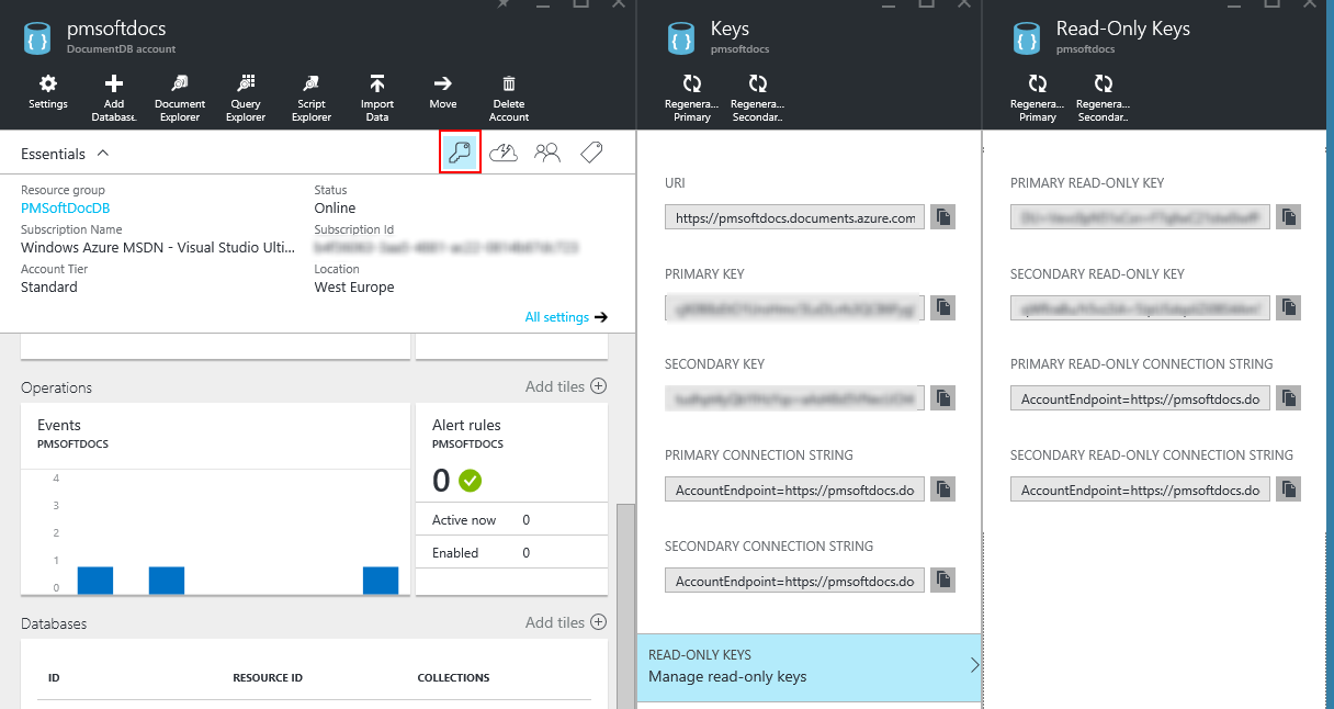 Once created you can find the keys and adjust the consistency mode (but for now leave it at session level)