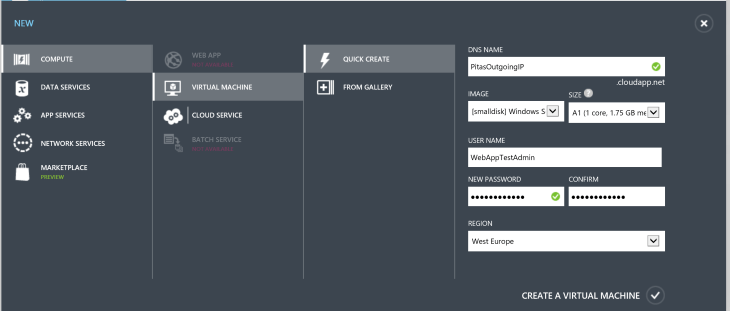 In the old portal I create a new Virtual Machine. The cloud service will be created at the same time. Nothing strange here.