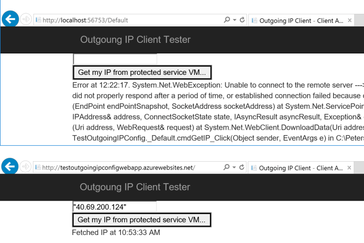 I did however still use Azure to Azure communication, though in different data centers and on different platforms (Web App vs VM). An even more thorough test could be performed by setting up the host service on another hosting platform (on premise or at another cloud provider).