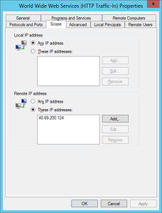 This post will dig deeper into this matter and I will set up a protected service and then try to open for calls only on the IPs from the Web App (from the portal) to see what happens. Is the x.x.x.0 address needed or not?