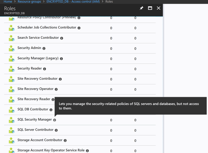 - Use the entire set of roles when assigning rights to groups and people. Again don’t give your SQL Security Responsible owner rights to the database. Give a more restrictive access. You can find a complete list of roles here.